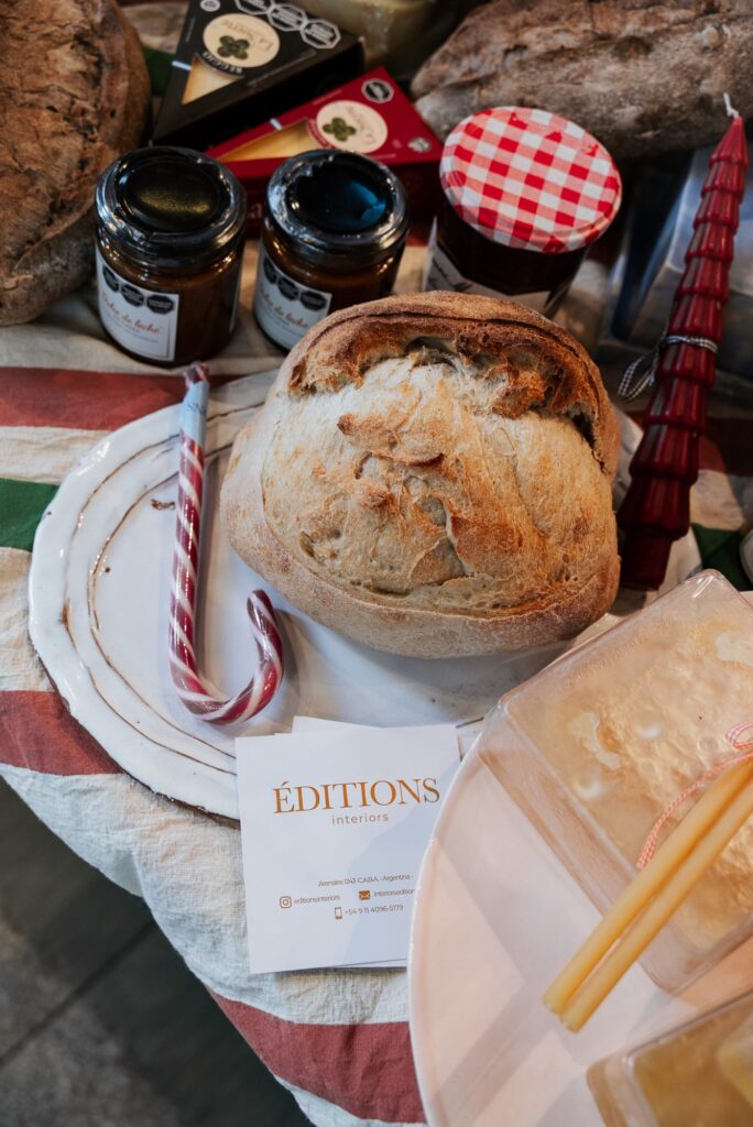La noche del 24 comienza con una mesa fría que incluye opciones como ensalada de hojas tiernas con peras asadas, queso azul y garrapiñadas; tomates reliquia con burrata, pistachos y aceite de albahaca; hummus de garbanzos con miel y ají molido; y tatin tibia de cebollas caramelizadas con queso artesanal. Se suma una selección de quesos y charcuterie artesanal con conservas, chutneys y panes, junto a una mesa de mar con propuestas como tartar de pesca del día, gravlax de trucha, terrina de salmón y mariscos, trucha ahumada y mini tartine de salmón.